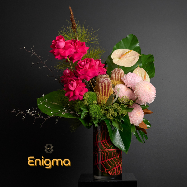 A tropical inspired, structured design of premium Summer florals, with a nod to beautiful Australian Grown botanicals. This design is arranged and presented in a premium, ceramic vessel.