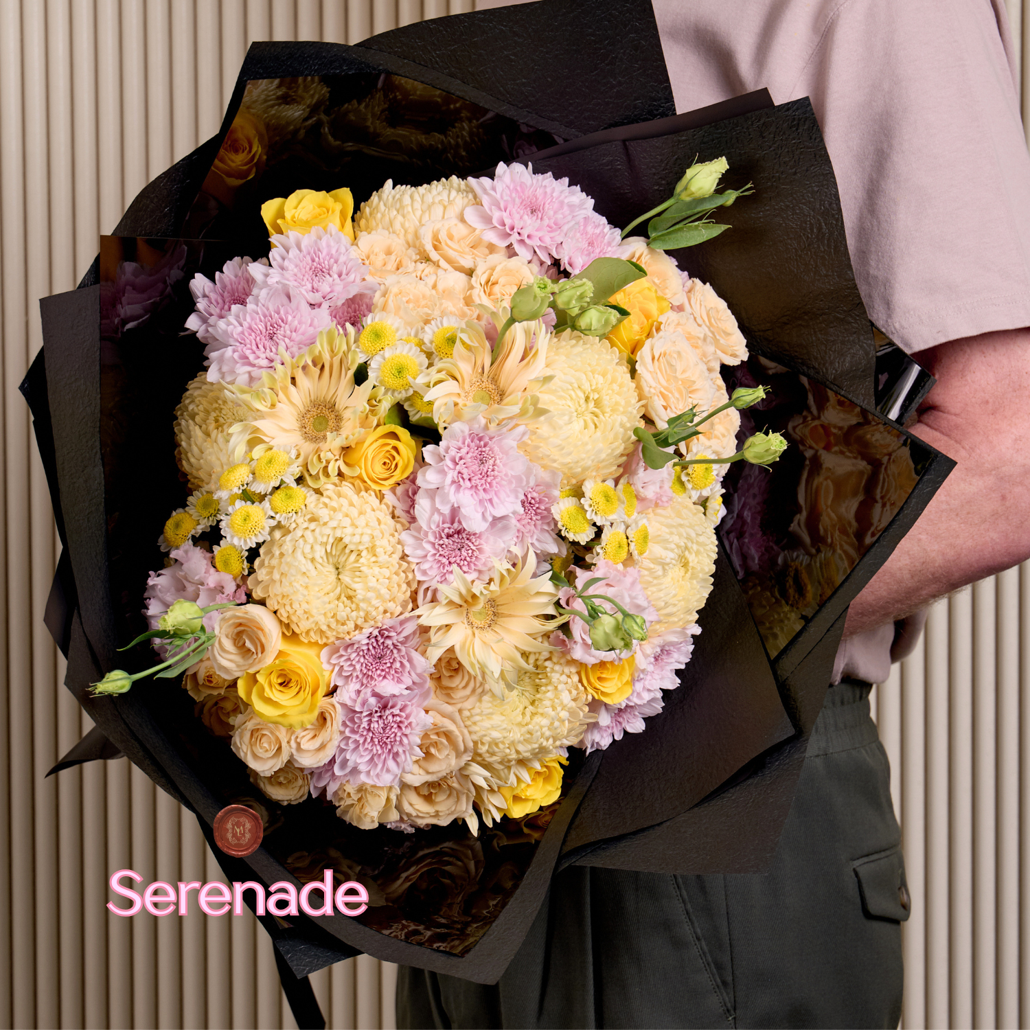 Our premium, seasonal bouquet. This is “What’s best” in our studios on the day. We’ll gather a selection of beautiful blooms in your desired palette and create a tightly compacted, autumn bouquet, wrapped in our signature black wrap.