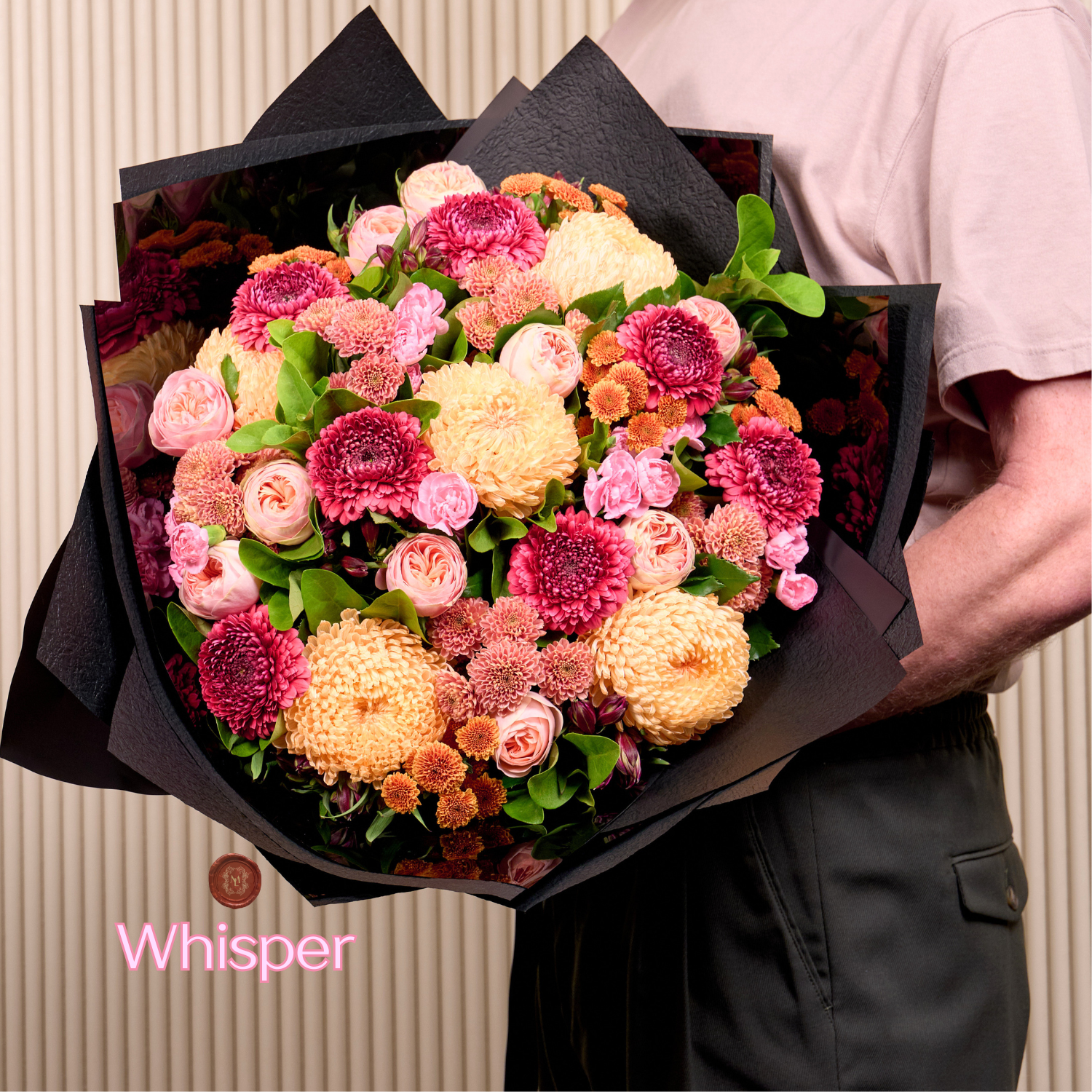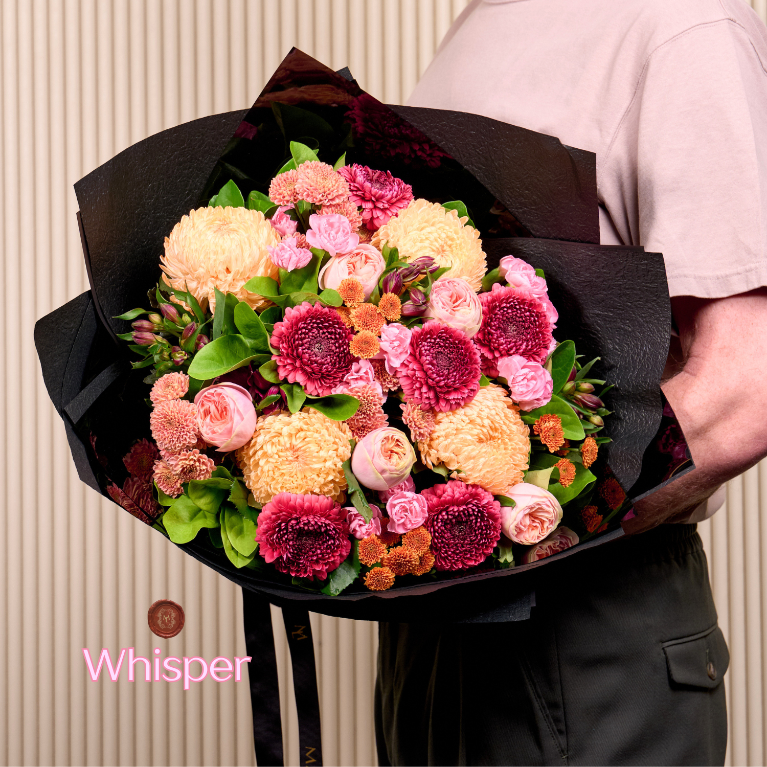 Our premium, seasonal bouquet. This is “What’s best” in our studios on the day. We’ll gather a selection of beautiful blooms in your desired palette and create a tightly compacted, autumn bouquet, wrapped in our signature black wrap.